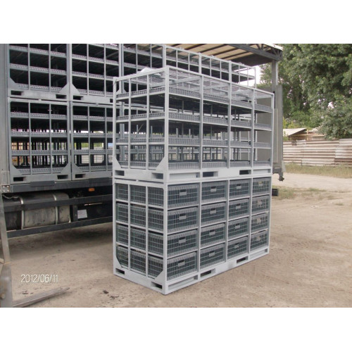 Особенности: предназначен для перевозки 16 открытых ящиков для перевозки живой птицы, типа П-2. Возможность штабелирования один на один.